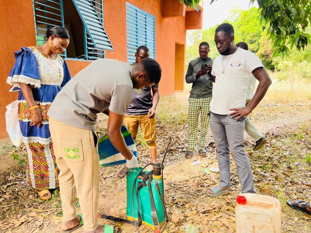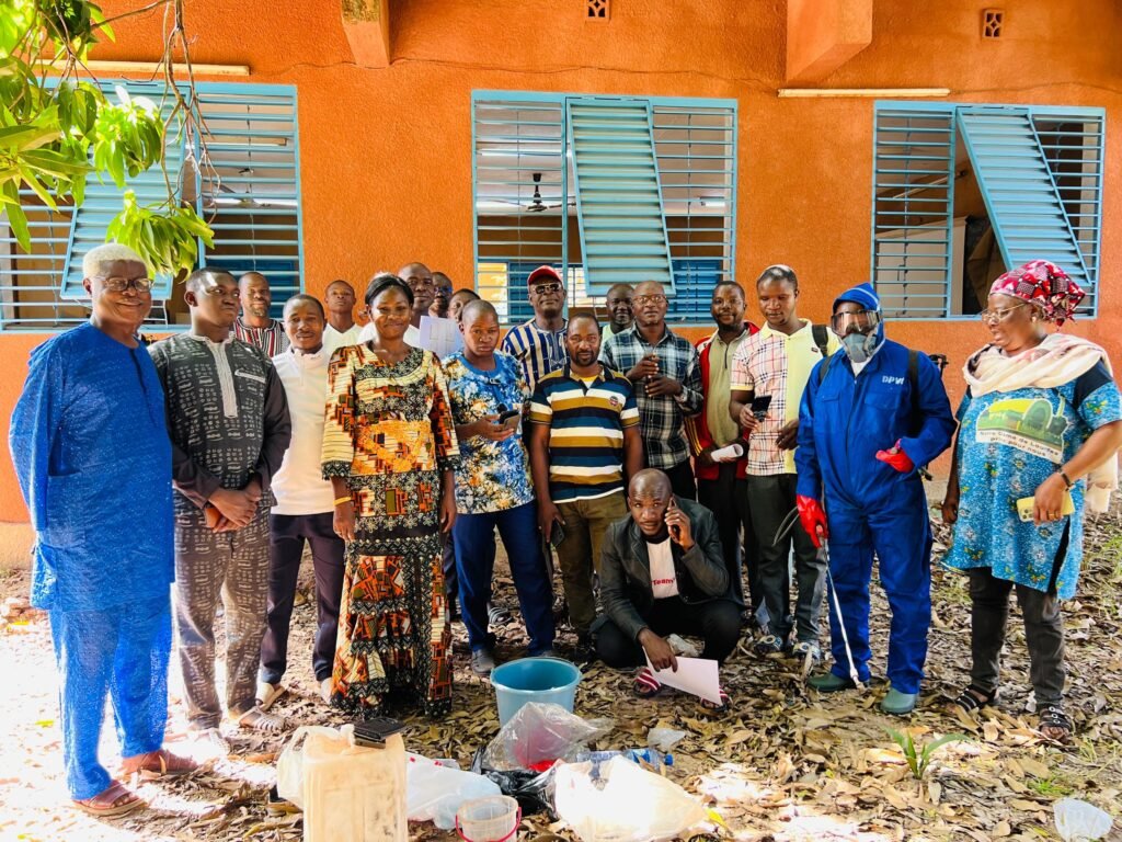 Les acteurs du projet « Diffusion de formulations hydro-alcooliques de substances végétales contre les mouches de fruits du manguier au Burkina Faso » ont organisé deux sessions de formation, de manière participative à la production des formulations hydroalcooliques avec les techniciens de l’agriculture et les producteurs. C’était, du 21 au 22 et du 28 au 29 novembre 2025, à Orodara, sous la présidence du Directeur Provincial de l’Agriculture et des Ressources Animales et Halieutiques du Kénédougou (DPARAH), M. Gassi LOUGUE.